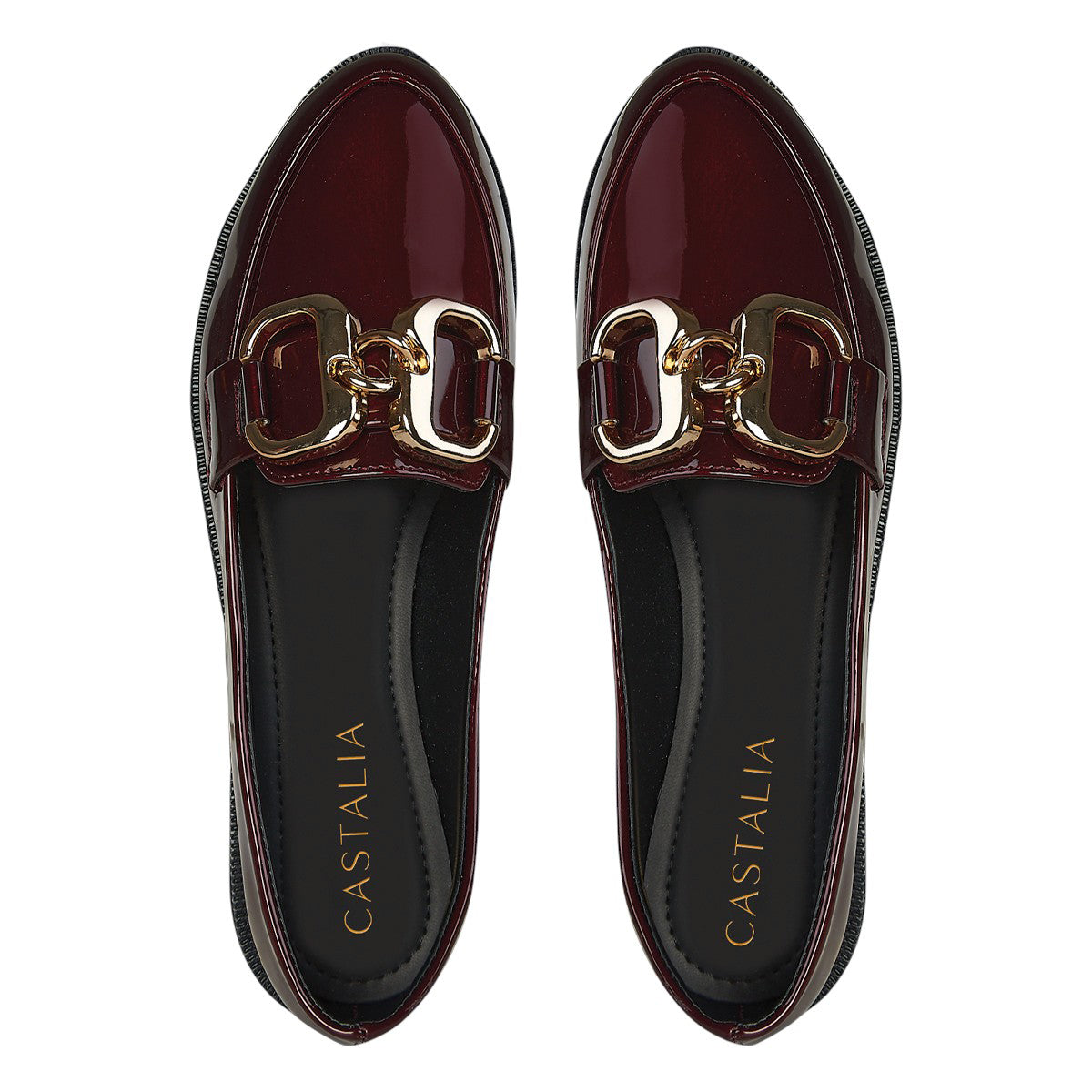 Balerina Charol Mujer Castalia 185-015 Merlot Hebilla Dorado